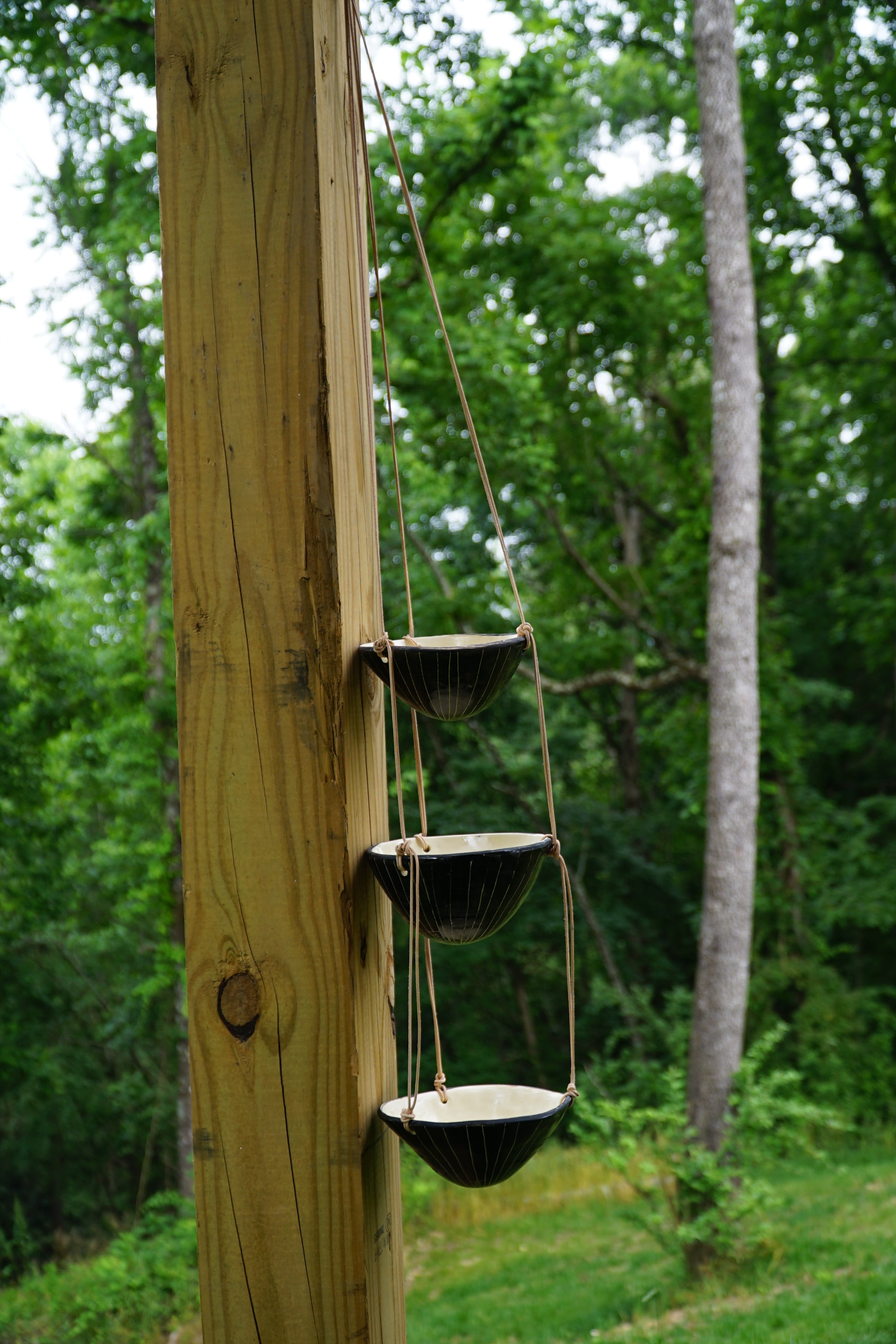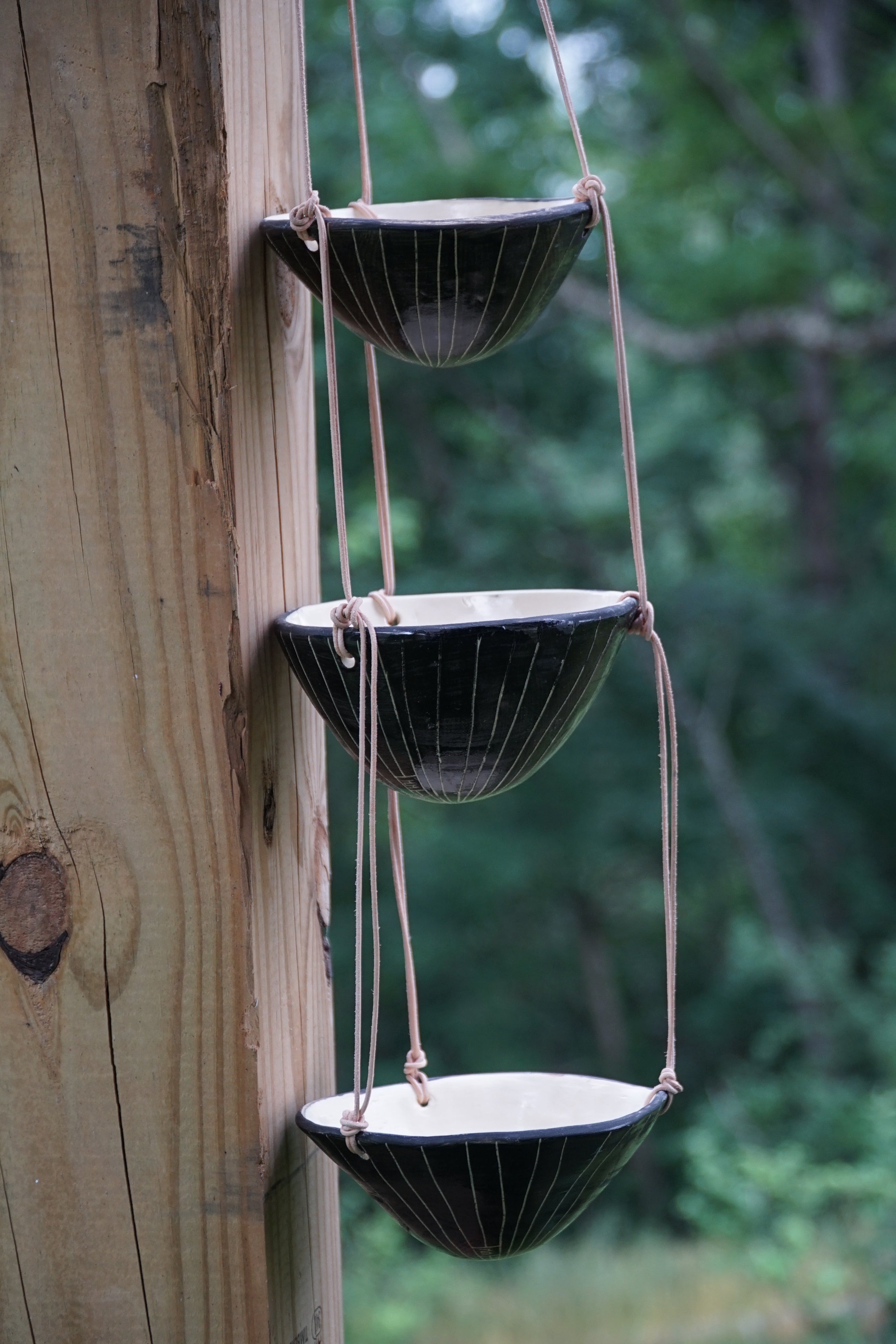 Discover the charm of handcrafted artistry with this 3-tier earthenware hanging planter, featuring a unique sgraffito hand-carved design. Perfect for adding vertical greenery to your space, this planter combines functionality and beauty with its vibrant glazed surface and durable leather cord. Ideal for plant lovers seeking a stylish and practical way to display their favorite herbs or succulents.