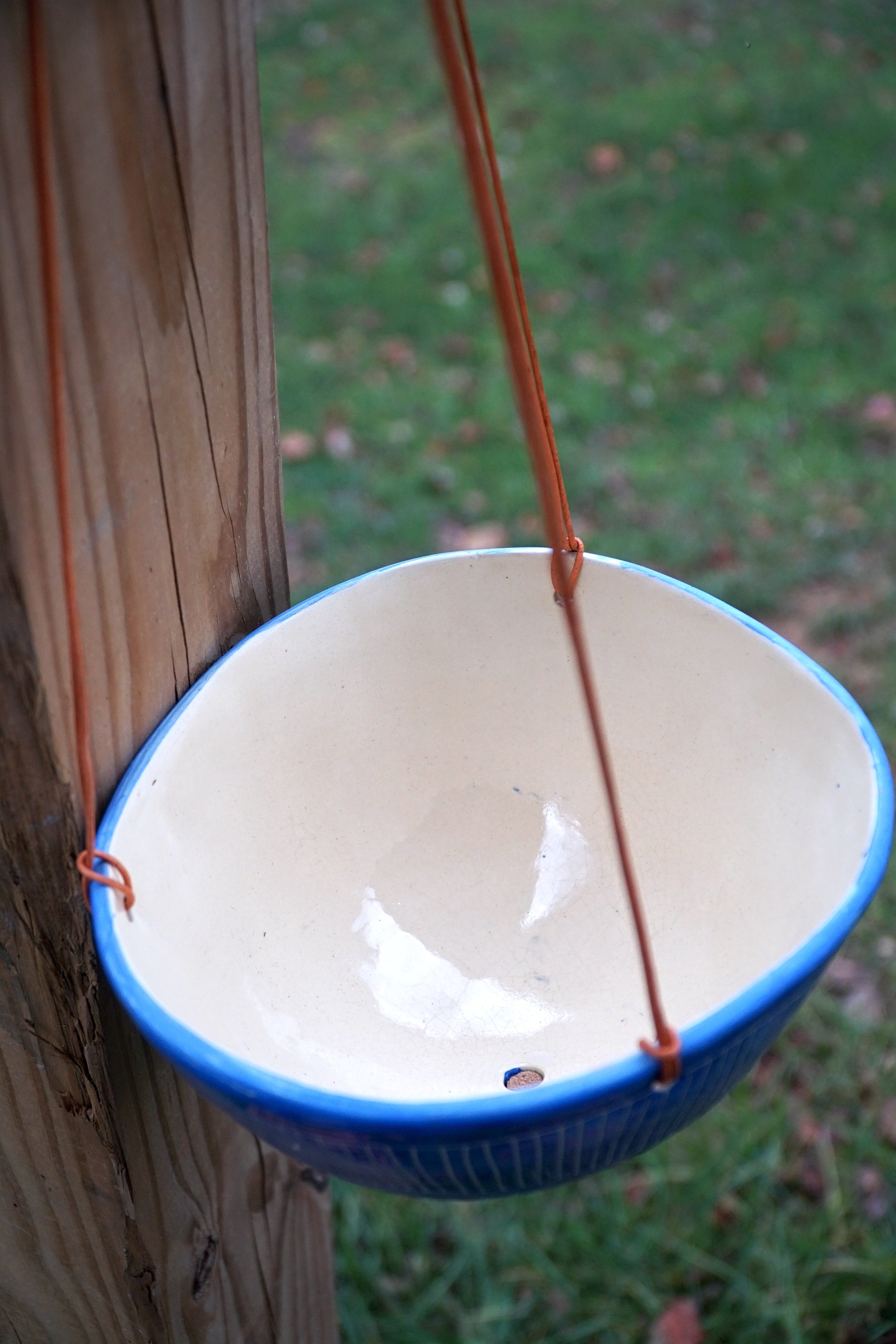 Large Blue & White "Directional Line" Ceramic Hanging Planter – Hand Carved Earthenware Pot with Drainage Hole & Rustic Leather Cord