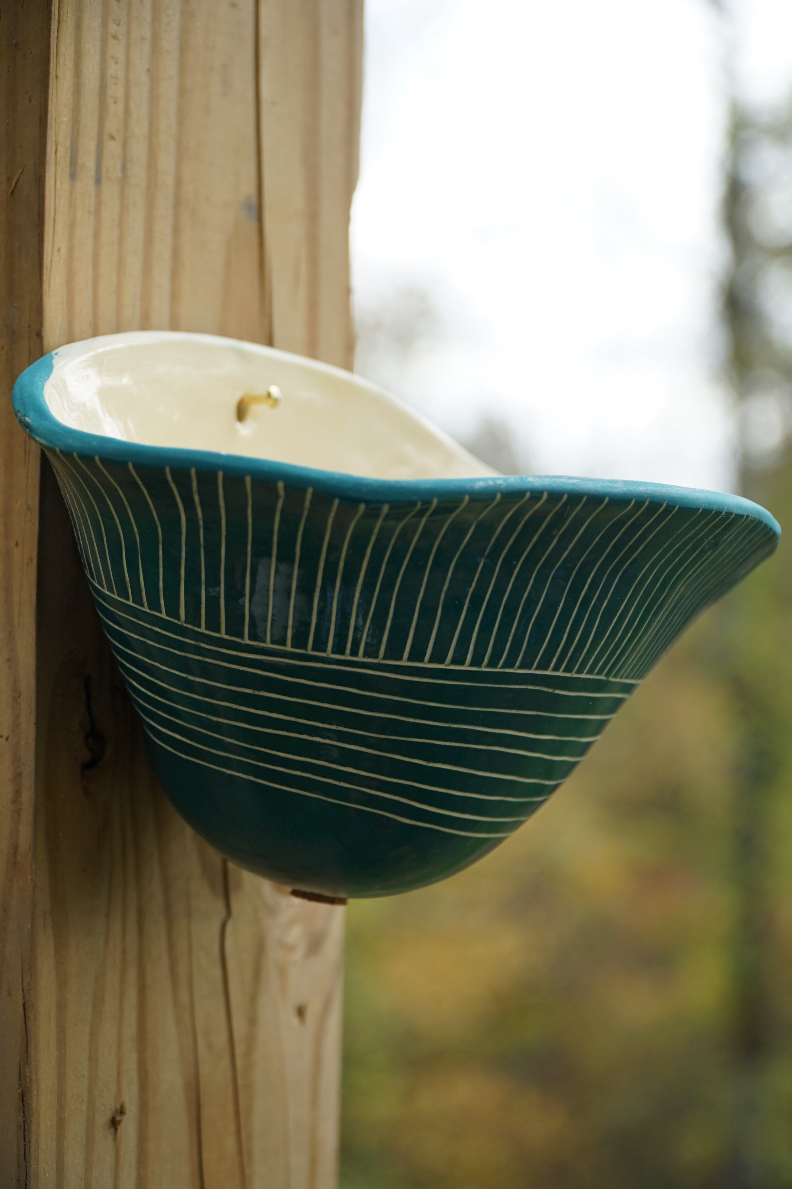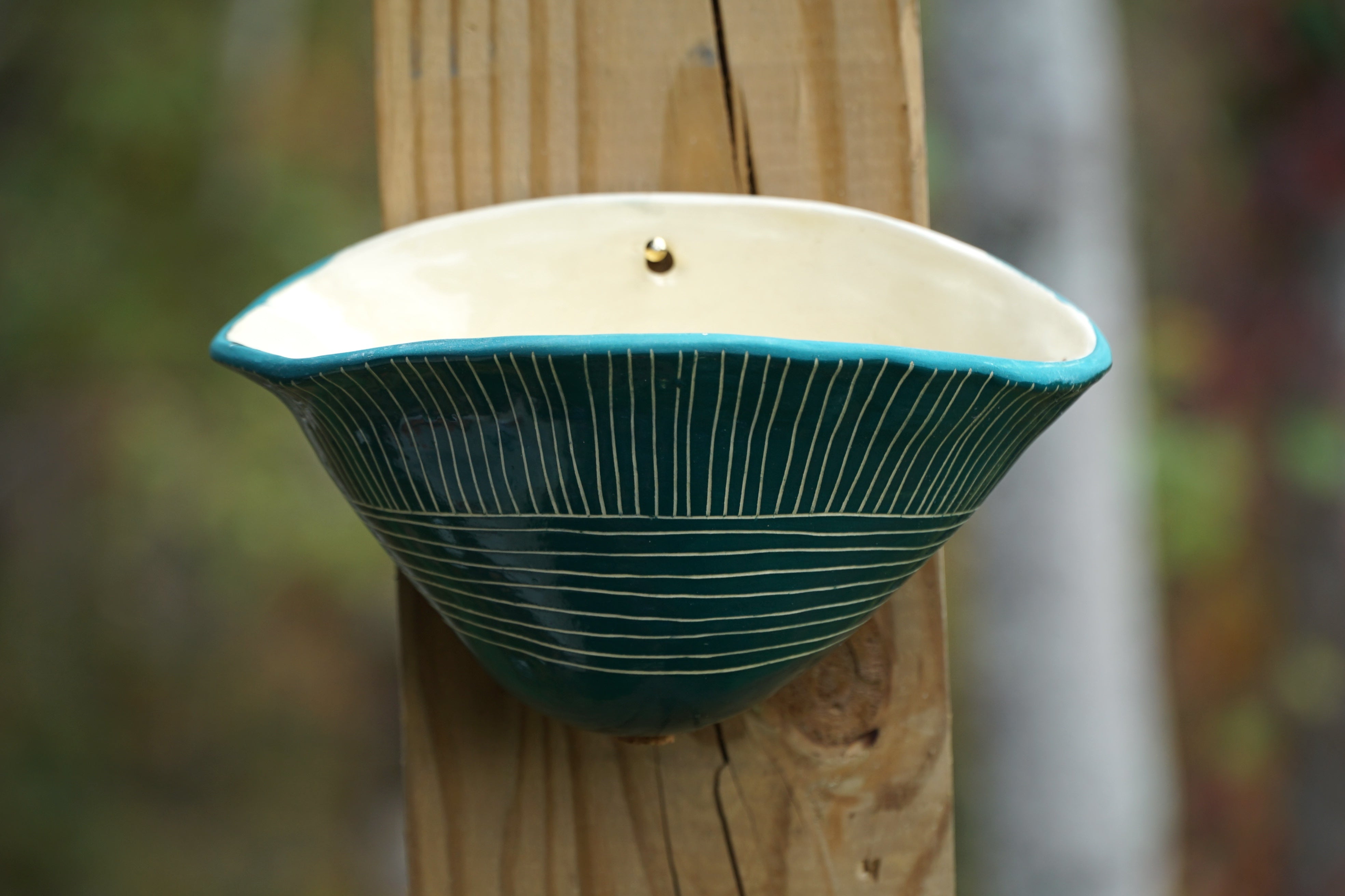 Ceramic Wall Planter – Handmade Pottery Planter with Sgraffito Design & Drainage Hole