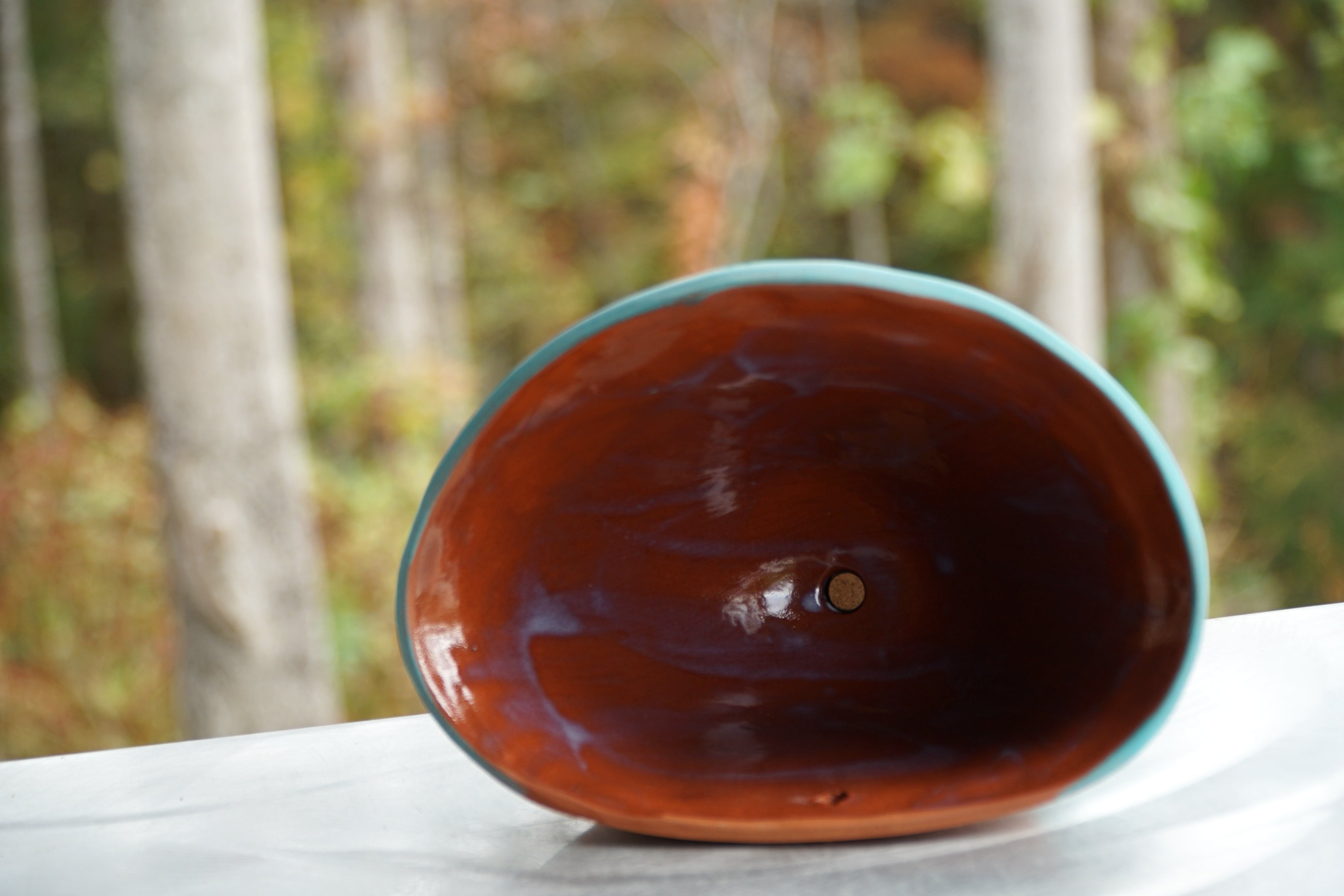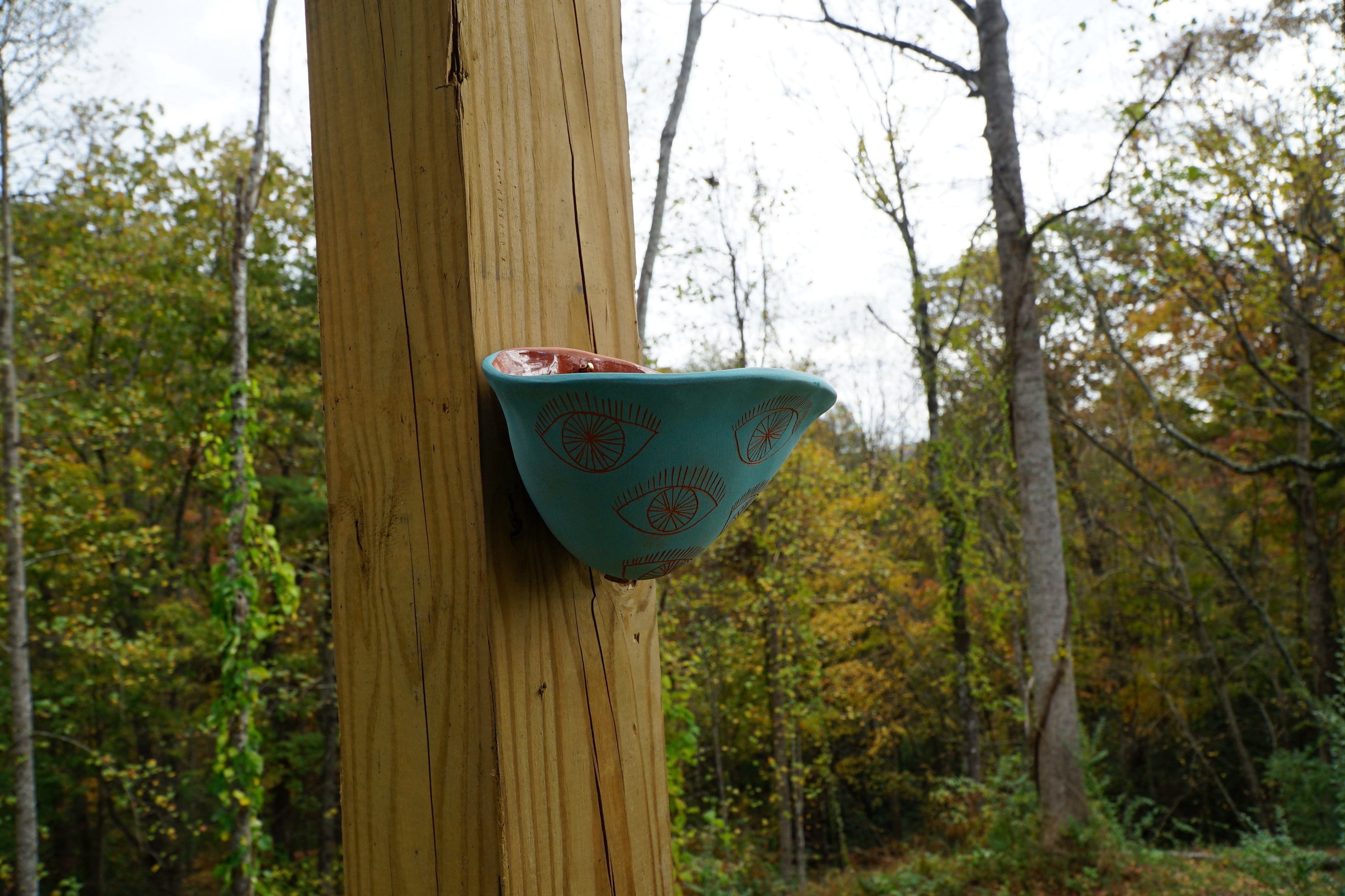 Terracotta Turquoise Funky Eye Design Sgraffito Wall Pocket Ceramic Planter with Drainage Hole
