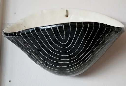 Details: -Handmade earthenware ceramic -Black & white sgraffito Arc pattern -Wall-mounted pocket planter -Drainage hole for healthy plants -Fully glazed interior & exterior -Approx. 7" x 4" x 4" -Hand wash only -Each piece is one of a kind and will vary slightly due to the handmade process.