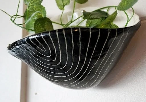 Black and White Wall Pocket Planter | Handmade Ceramic Pottery with Arc Design | Succulent & Houseplant Planter